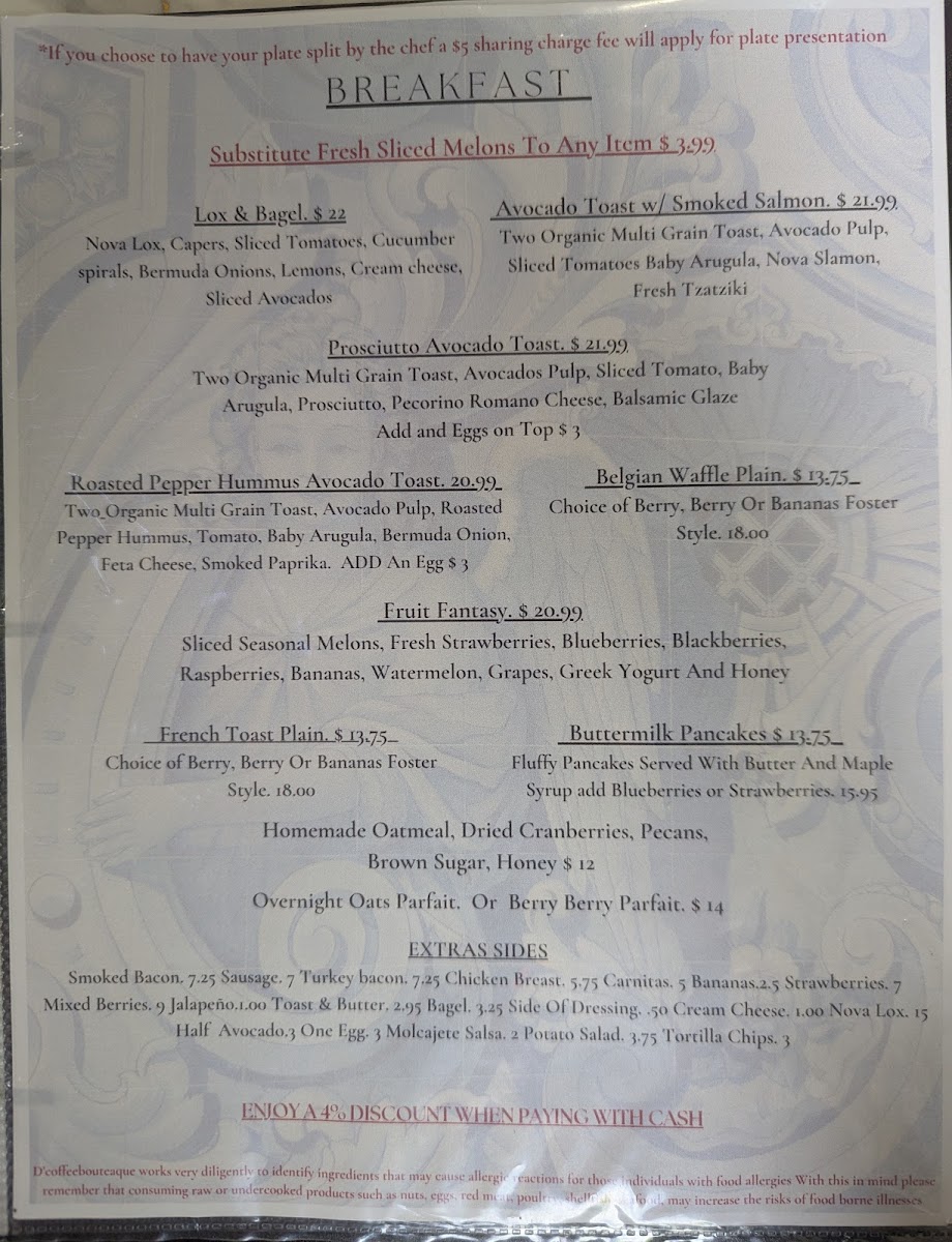 Customers have consistently praised D’ Coffee Bouteaque for not only its delectable menu but also for the welcoming atmosphere and exceptional service. One enthusiastic visitor, Bon Mil, exclaimed, “The latte was excellent and the hummus avocado arugula toast with a big juicy tomato slice was delicious! Everyone who worked there was so nice and friendly.” This sentiment is echoed by many, highlighting the delightful and personalized touch that the staff brings to each interaction.